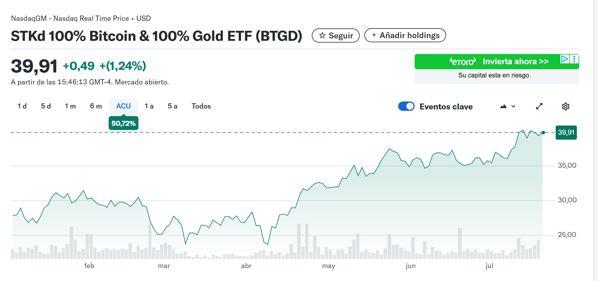 Y por cierto, si no quieres dejar de perder la oportunidad de invertir en reservas de valor como el oro o Bitcoin, su rally alcista continúa y no parece tener fin. Por ejemplo el ETF americano STKd Bitcoin & Gold, que respalda cada una de sus posiciones con Bitcoin y oro real ya lleva una revalorización superior al 50% en lo que va de año.