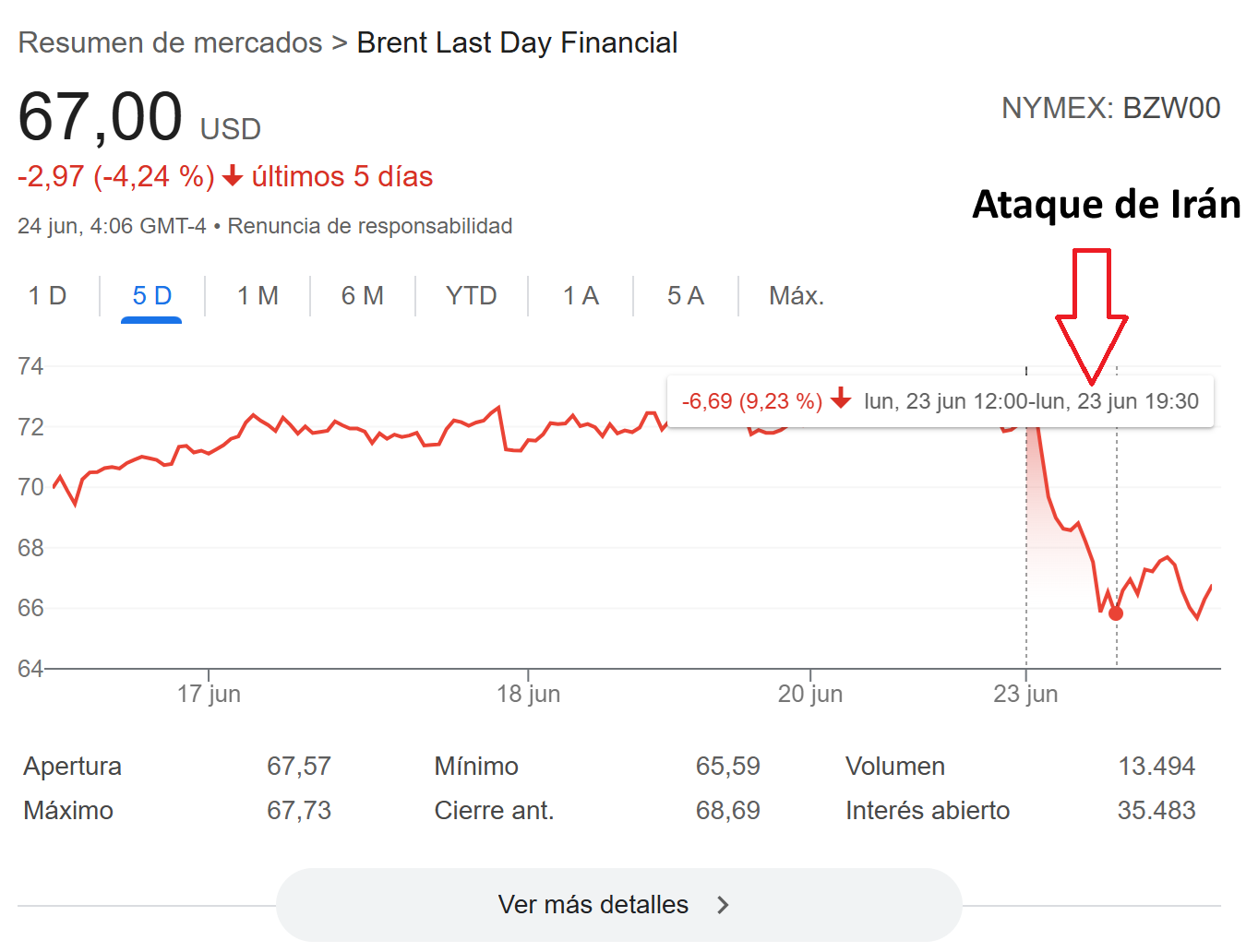 Cosa diferente fue cuando atacó Israel, ahí se que se temió lo peor por unos días. No obstante, vista la escenificación con la que han continuado EEUU e Irán, parece que poco a poco, las aguas irán volviendo a su cauce, y no peligra el cierre del estrecho de Ormuz.