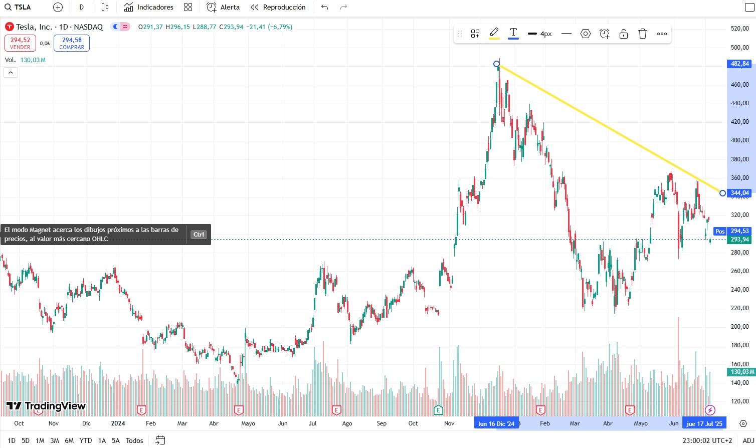 Hace apenas una semana, en plena gresca pública entre Elon Musk y Donald Trump, el título se desplomó un 14%. Y, lejos de encontrar suelo, la acción volvió a ceder otro 7% este lunes, después de que Musk anunciara su intención de fundar un nuevo partido político, con lo que la caída acumulada en 2025 ronda ya el 21%.