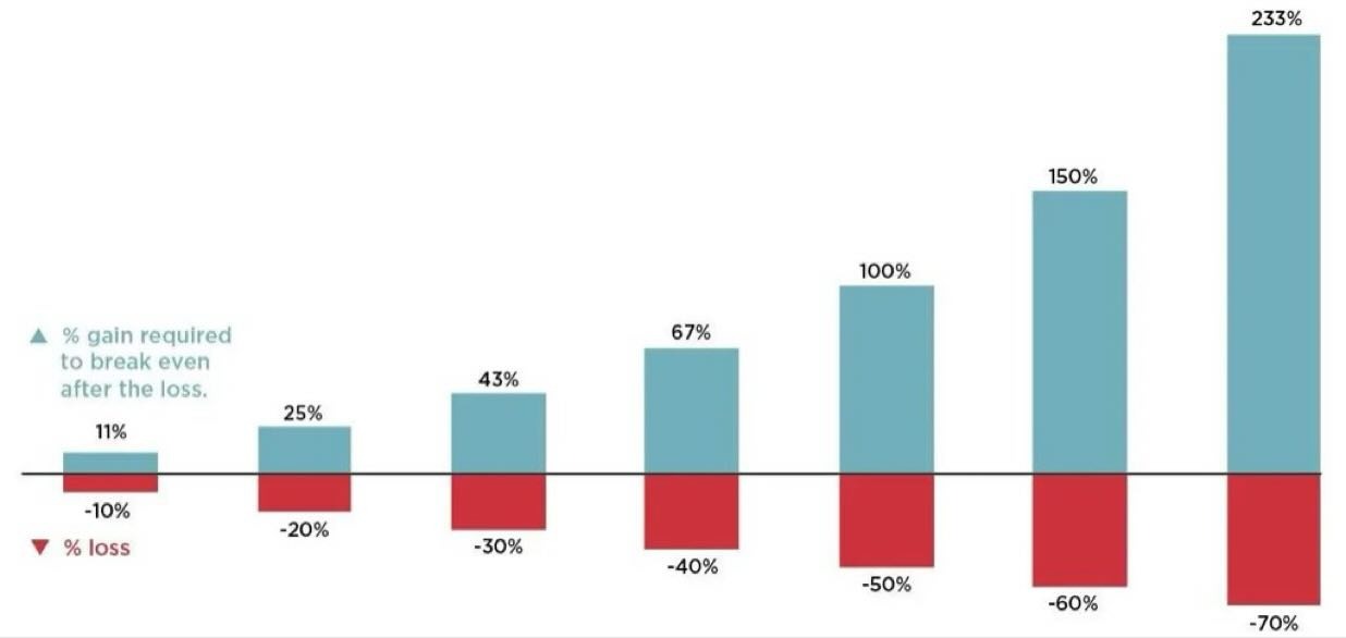 Porque sino, las matemáticas son implacables. Perder un 20% obliga a ganar un 25% para recuperarse. Perder un 50% exige duplicar. Perder un 75%, cuadruplicar. Y así sucesivamente. Esa es la forma en la que el interés compuesto se rompe, pero no de golpe; se desgasta con decisiones pequeñas, repetidas y auto justificadas, hasta que el daño es irreversible.