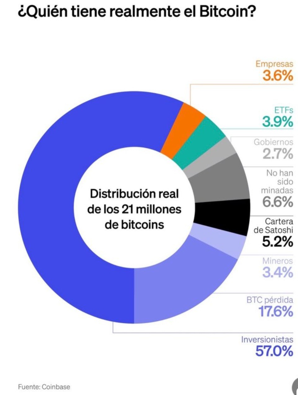 Esto demuestra que más que obsesionarse con “quién lo tiene”, lo importante es entender quién puede influir en su oferta mañana, y por ende, en su precio en cualquier momento. Y ahí Bitcoin juega con reglas distintas: hay una parte significativa que está fuera de circulación (perdida o inmóvil), una emisión futura predecible, y una demanda que, poco a poco, se está abriendo a nuevos canales (ETF, tesorerías corporativas, etc.).